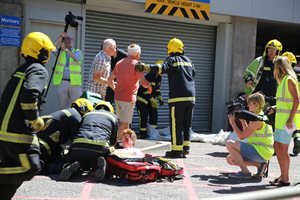 As the emergency crews swung into action, their responses were being monitored by observers and students as part of the training process.