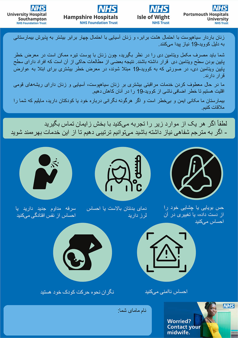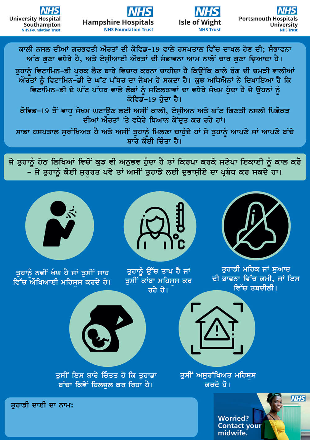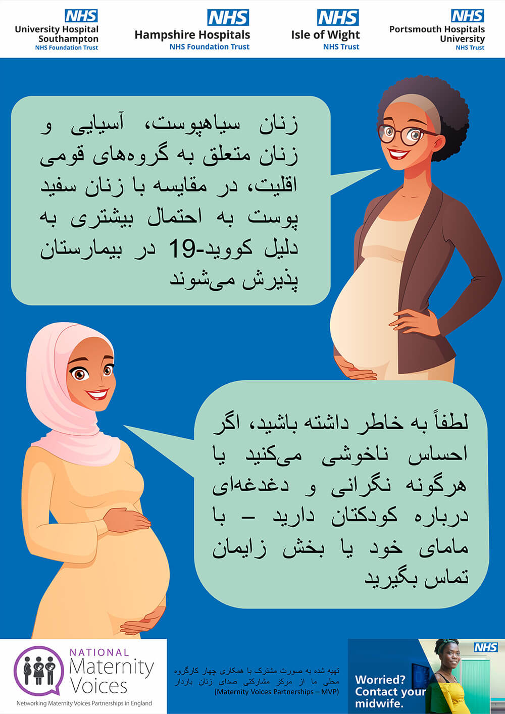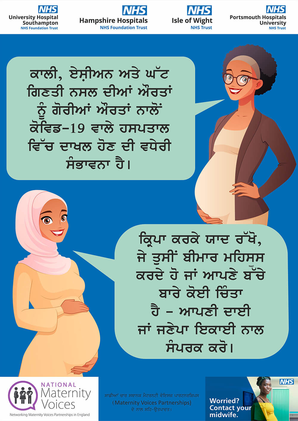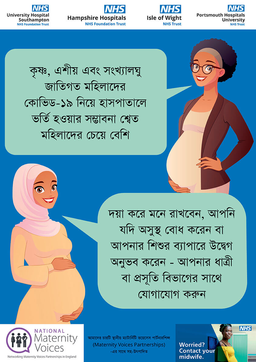 As a pregnant person from a Black, Asian or minority ethnic (BAME) background, you may feel worried about coronavirus. Your local maternity team is still here to help you, so contact them as you would normally. They will be working together with you and providing you with extra support during this unprecedented time.