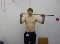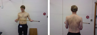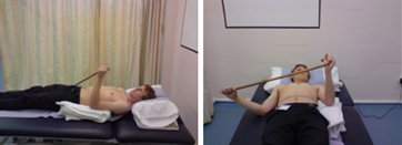 - Push involved arm outward using the stick just until it is in alignment with the shoulder. Do not over push this movement in the first four weeks or it could place strain over the shoulder repair.