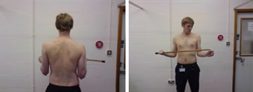 You can also use a stick by gripping the handle with the thumb uppermost. Gently pull out the involved arm whilst resisting with the unaffected arm. There should be no arm movement.